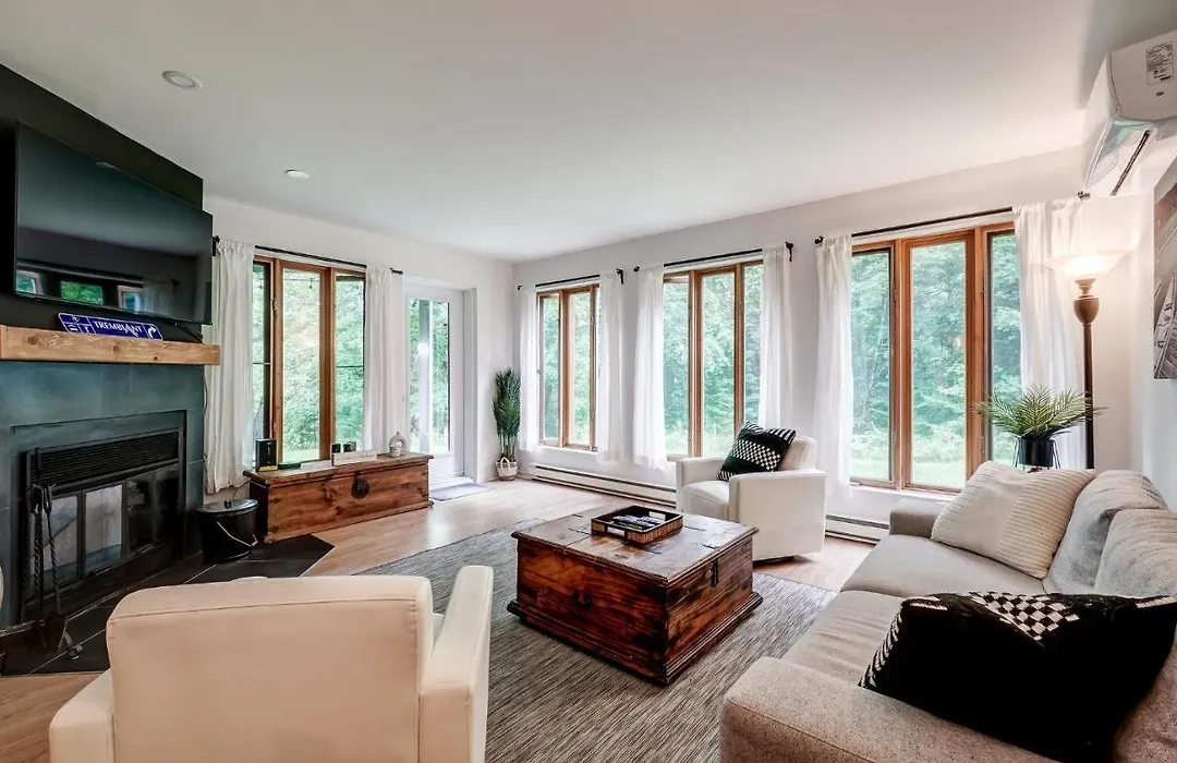 To enjoy your vacation in Mont-Tremblant, stay at the spacious 115 m^2 Le Seven Apartment, which is 2.5 km from Domaine Saint-Bernard and 10 minutes by car from Parc du Voyageur. The 2-bedroom apartment welcomes guests with indulgent amenities including a golf course and a garden.
